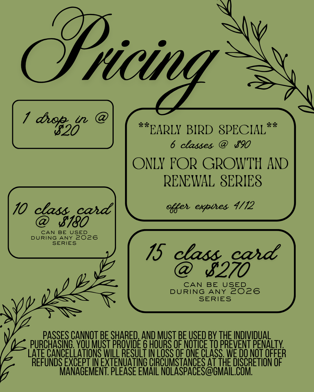 Growth and Renewal 6 week Series is open! ENROLL TODAY! Please note that drop ins are available throughout the series.